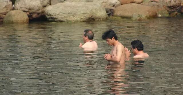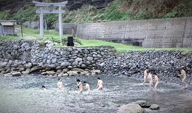 值得一提的是,无论多冷,神职人员都要脱光衣服跳进海里,这是古代传下来的一种祭祀方式。